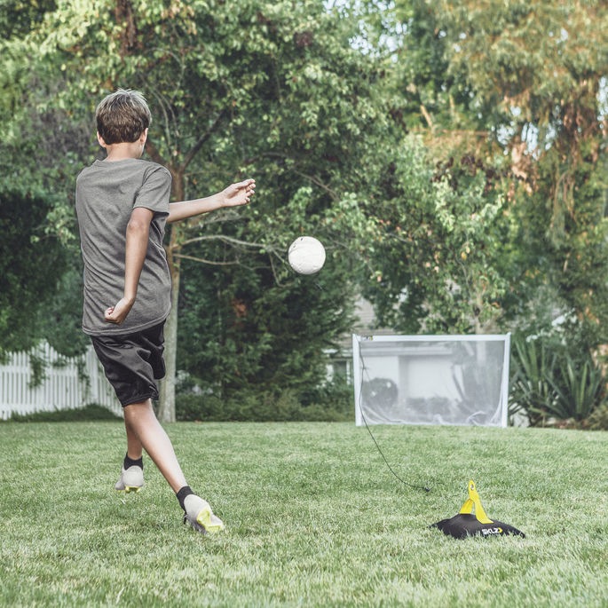 Чтобы стать футбольным профессионалом, нужно 10000 часов практики. Футбольный тренажер Kickback имеет высокопрочный эластичный шнур, так что игроки могут тренироваться, не теряя время на погони за мячом.