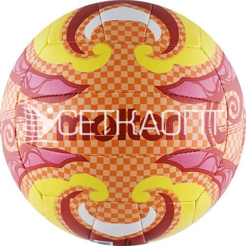 Волейбольный мяч любительского уровня. Мягкая матовая синтетическая кожа (поливинилхлорид), 2 подкладочных слоя из синт. ткани, 18 панелей, машинная сшивка, бутиловая камера.