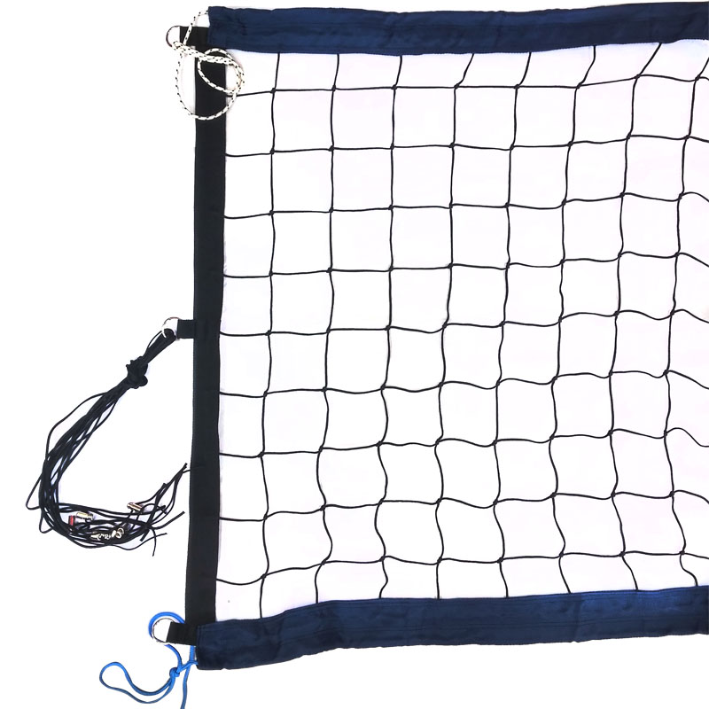 Верхние и нижние ограничительные ленты шириной 7,5 см из полиэстера синего цвета, боковые ленты шириной 5 см из полиэстера черного цвета. Полотно сетки из специального светостабилизированного, водоотталкивающего пропилена черного цвета (толщина нити 3,5 мм, ячейка 10см*10см). Применение данных материалов позволяет использовать сетку на открытых площадках при игре в агрессивных погодных условиях (яркий свет, дождь, высокая влажность, низкая температура воздуха) без угрозы растяжения и провисания полотна сетки, и разрушения структуры материала. Для равномерного натяжения сетки предусмотрены по 3 полипропиленовых шнура с каждой стороны, а также в боковые ленты вставлены фибергласовые стрежни, за счет чего сетка выглядит ровно натянутой даже при недостаточном натяжении троса и боковых шнуров.