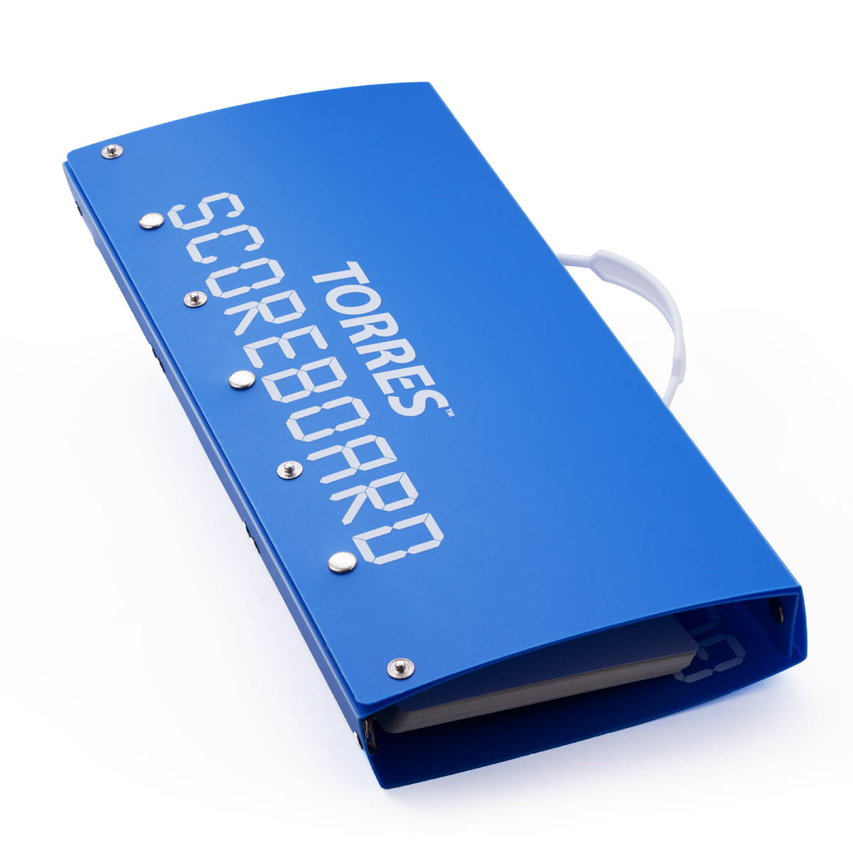 Счетчик для волейбола "TORRES". Предназначен для отображения счета по партиям (до 9), счета в партии (до 30). Складной, фиксация - на кнопках, без дополнительного стопора. Полностью изготовлен из пластика, кольца - металл. Листы с с обеих сторон напечатанными цифрами из ламинированного картона. Пластиковая ручка для переноски.